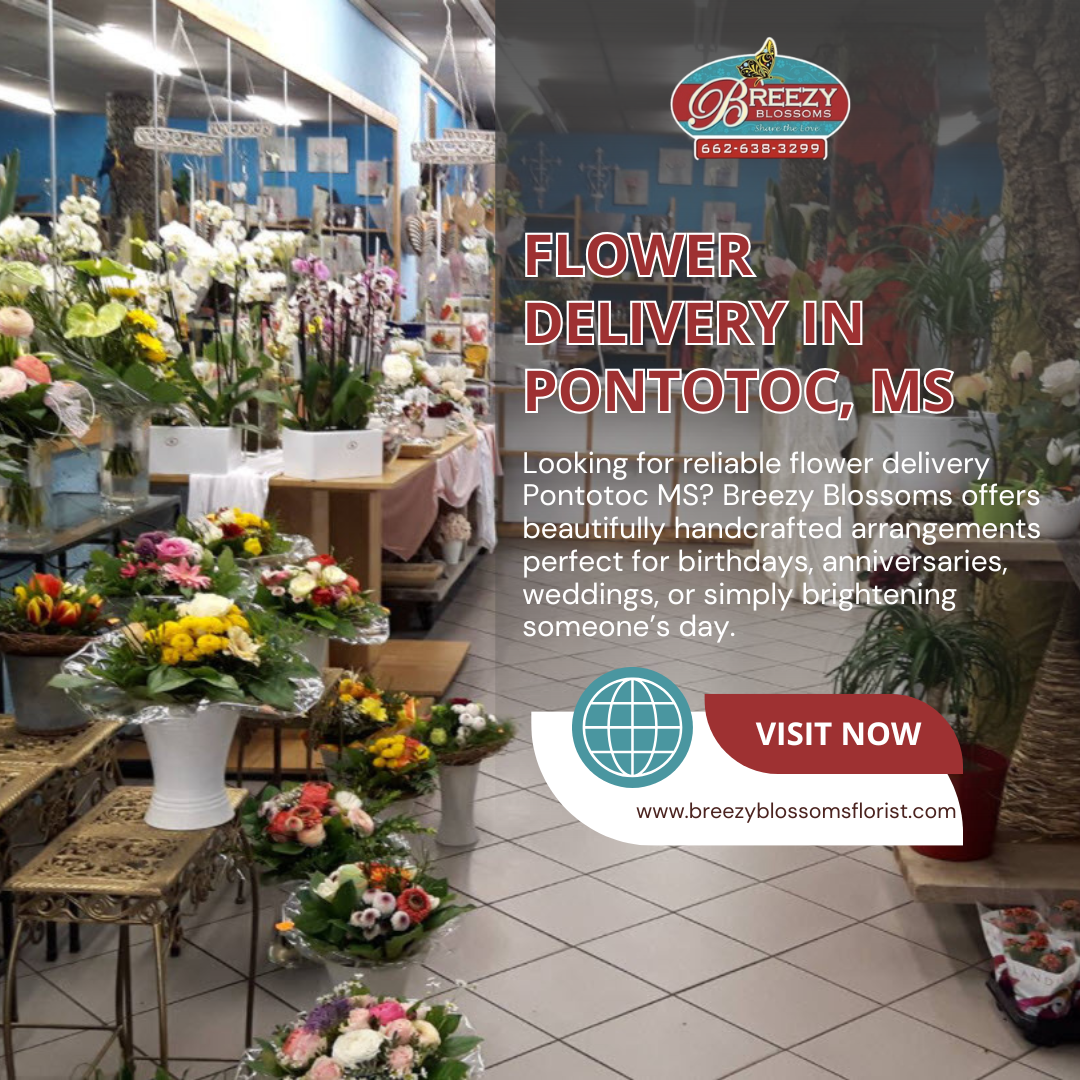 Looking for reliable flower delivery Pontotoc MS? Breezy Blossoms offers beautifully handcrafted arrangements perfect for birthdays, anniversaries, weddings, or simply brightening someone’s day. With a wide selection of fresh roses, lilies, tulips, and seasonal blooms, every bouquet is designed to express love, joy, or sympathy with elegance. Our prompt delivery service ensures your flowers arrive fresh and on time, making every occasion truly memorable. Whether you’re sending a heartfelt surprise or decorating for a special event, choose us for the best flower delivery Pontotoc MS that adds charm and beauty to every moment.