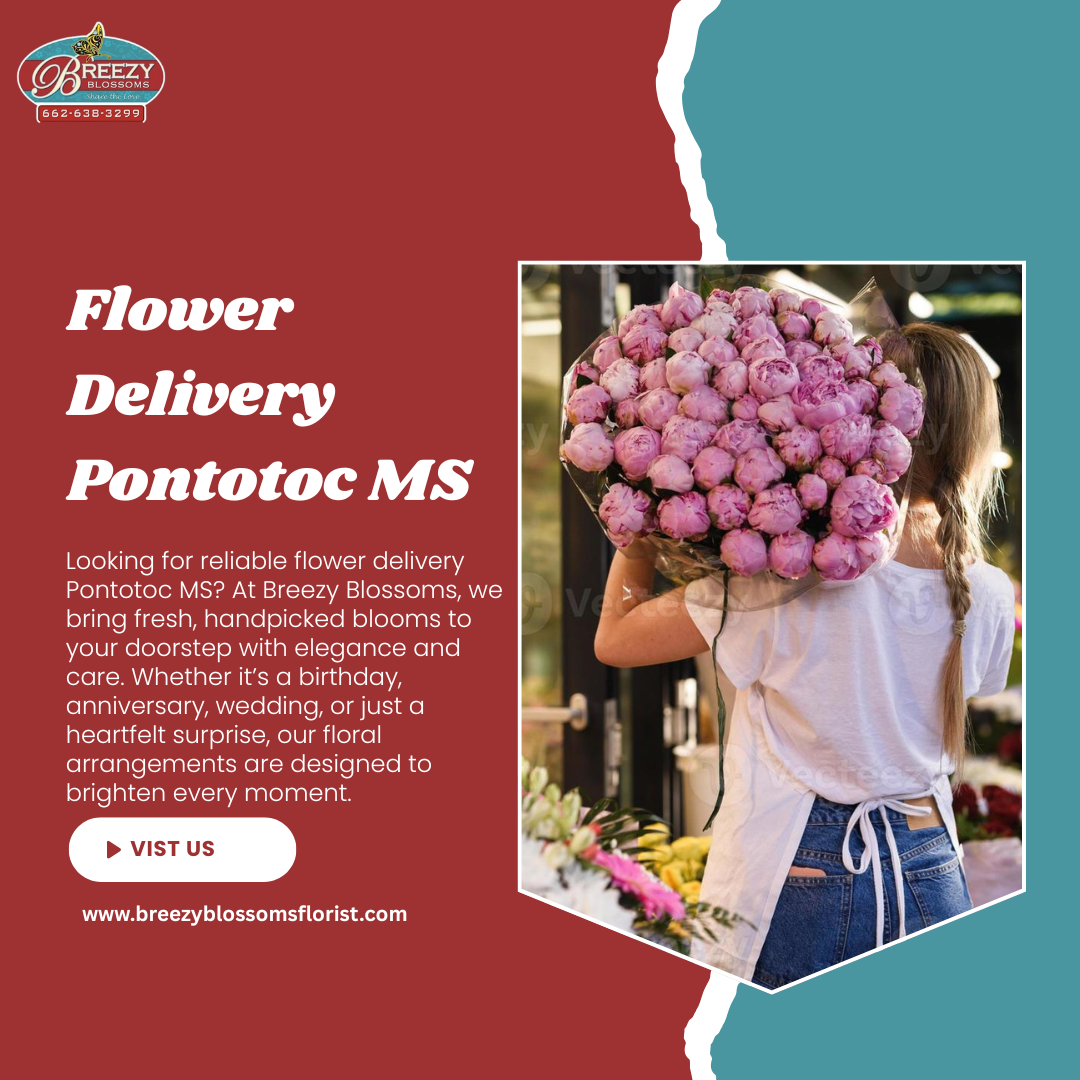Looking for reliable flower delivery Pontotoc MS? At Breezy Blossoms, we bring fresh, handpicked blooms to your doorstep with elegance and care. Whether it’s a birthday, anniversary, wedding, or just a heartfelt surprise, our floral arrangements are designed to brighten every moment. Choose from stunning bouquets, custom designs, or seasonal flowers to express your love and emotions perfectly. With prompt service and vibrant selections, we make gifting flowers simple and special. Trust us for same-day deliveries that never fail to impress. Celebrate life’s precious moments with the charm of flower delivery Pontotoc MS today.